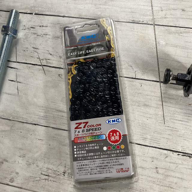 いま黒と蛍光グリーンのダサい9速のチェーンを8速のスプロケに使えるか確かめるために買って使っていて、気に入らないから真っ黒にするべくこれを購入したらテカりのある黒メッキ風のチェーンでこっちもダサかった。艶消しにしてくれと。普通にシマノ純正のチェーンを購入しておけばよかった